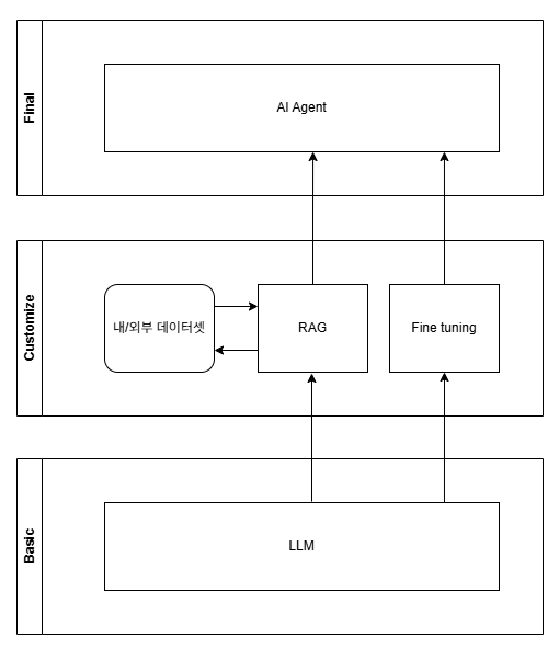결국 LLM이라는 엔진에 RAG/Fine-tuning이라는 연료를 채우고, 에이전트라는 바퀴를 달아 실제 비즈니스 현장을 달리게 하는 과정